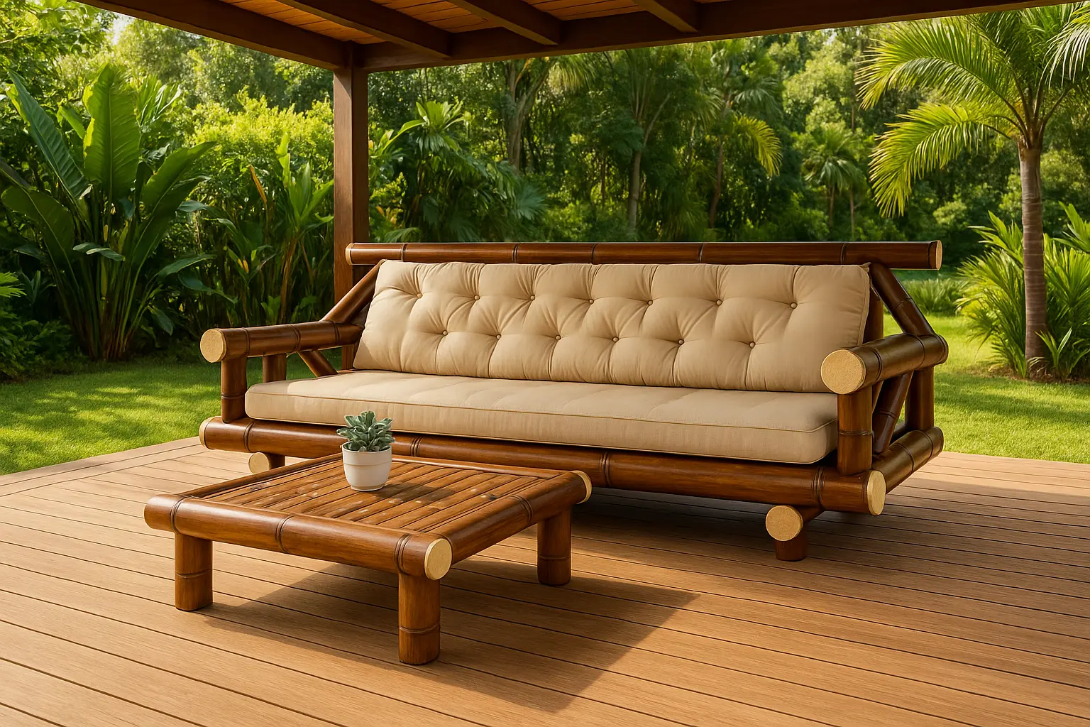 Ambiance chaleureuse et élégante avec nos salons en bambou. Canapés, fauteuils, tables basses : le combo parfait pour un extérieur raffiné.