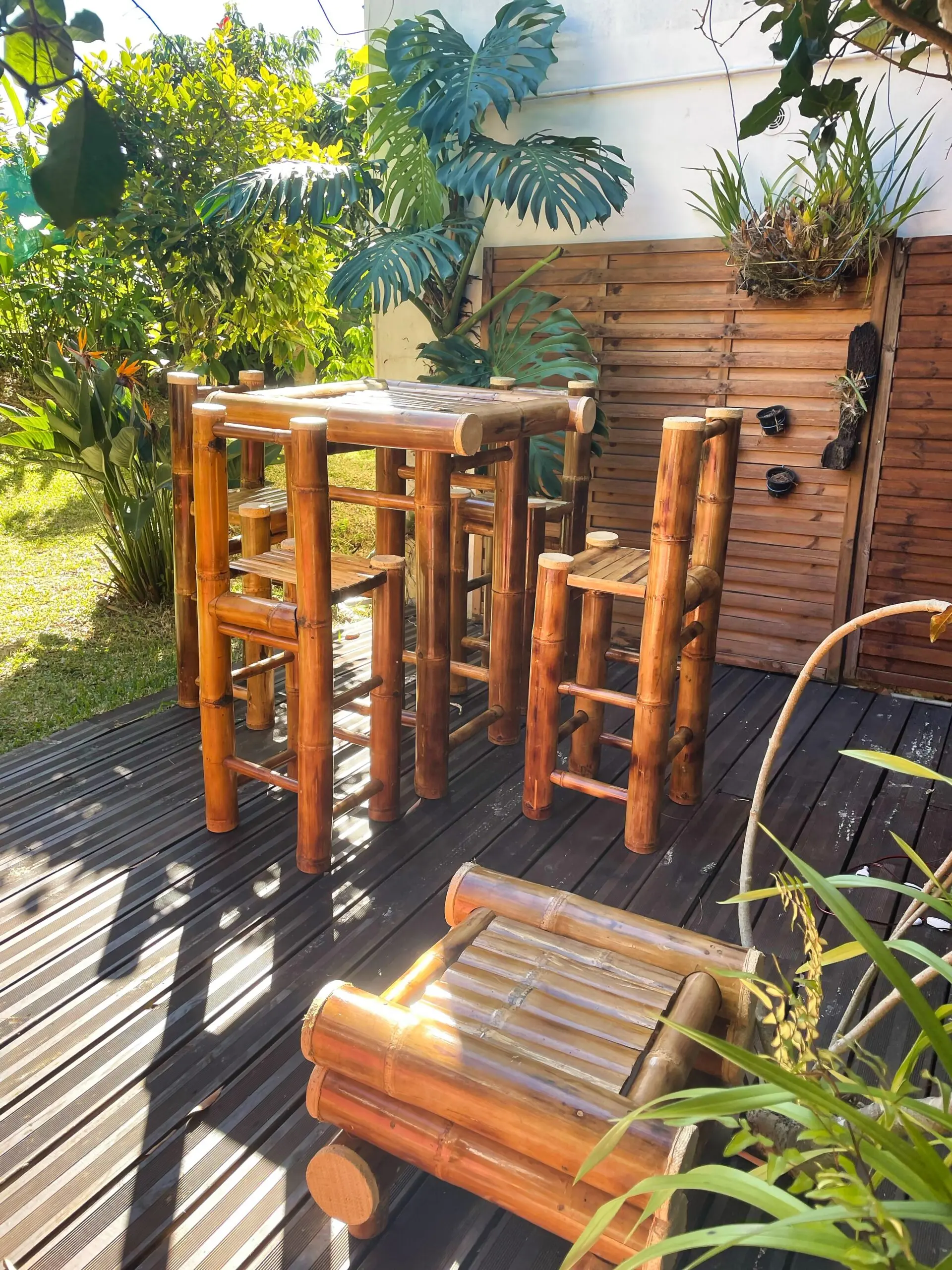 Idéale pour les moments conviviaux, notre table haute en bambou apporte du style à votre cuisine, terrasse ou espace bar. Robuste, naturelle, et facile à assortir.
